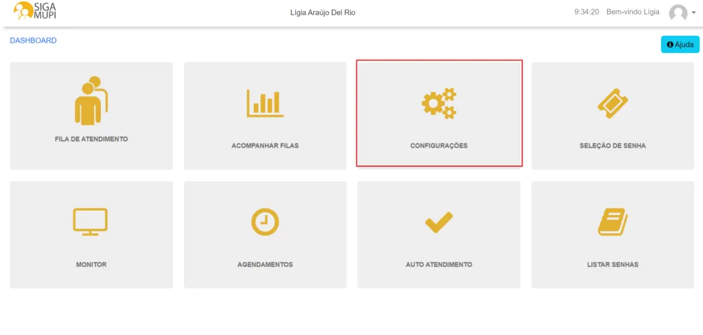 - Na área do Dashboard clique em CONFIGURAÇÕES.
