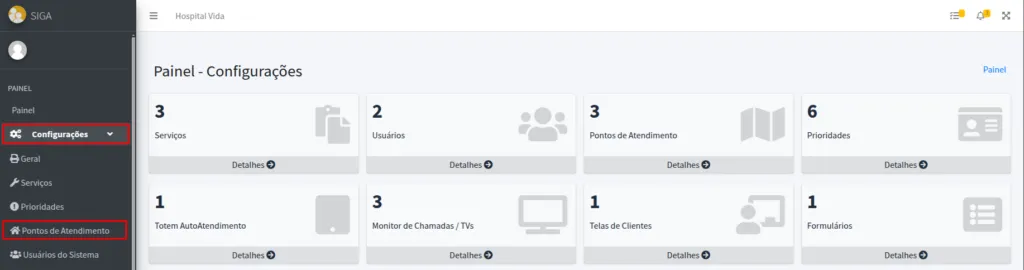 I – Acessando as configurações dos pontos de atendimento