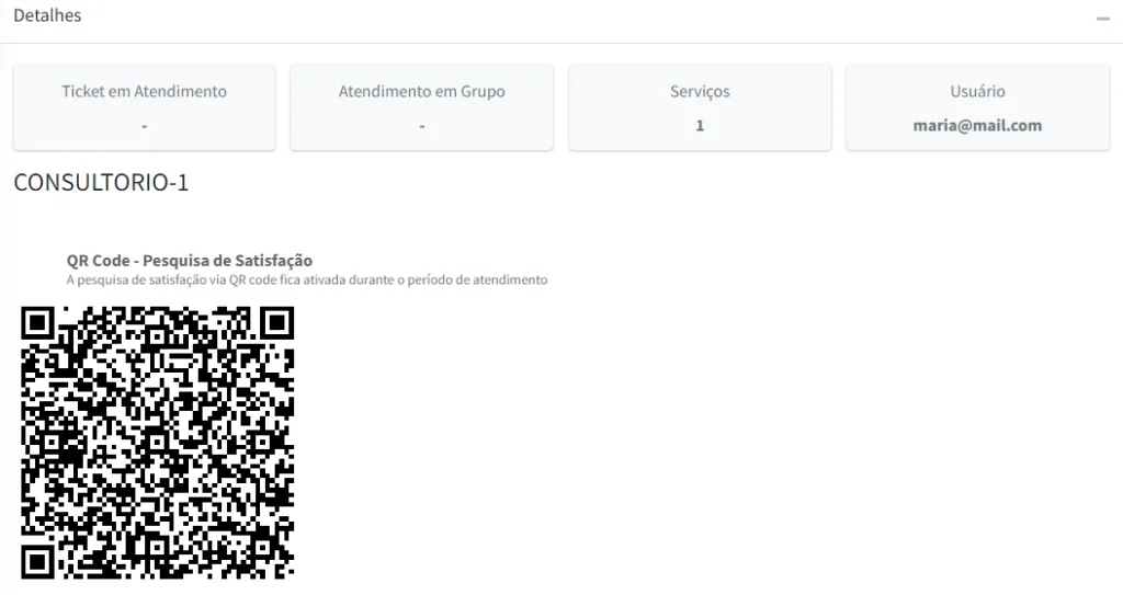 Caso você tenha configurado algum formulário de pesquisa de satisfação, será disponibilizado o QR code que dará acesso à pesquisa vinculada àquele ponto de atendimento específico. Esse QR code pode ser impresso e disponibilizado no ponto de atendimento para coleta.