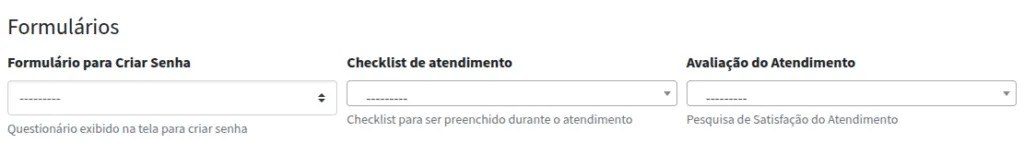 Você pode vincular formulários ao serviço. É possível criar três tipos diferentes de formulários, conforme demonstrado na imagem abaixo. Neste exemplo, vinculamos um formulário de pesquisa de satisfação ao serviço.