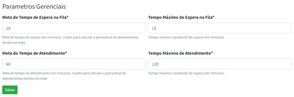 Por fim, você deve ajustar os parâmetros de tempo de espera e tempo de atendimento do serviço, conforme demonstrado na imagem abaixo: