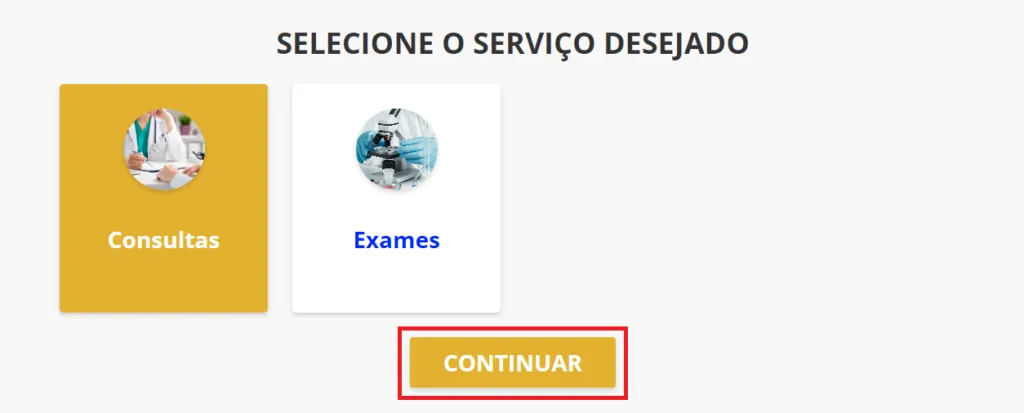 Veja nas imagens a seguir o resultado da configuração dos serviços Consultas e Exames na tela de seleção de senha: