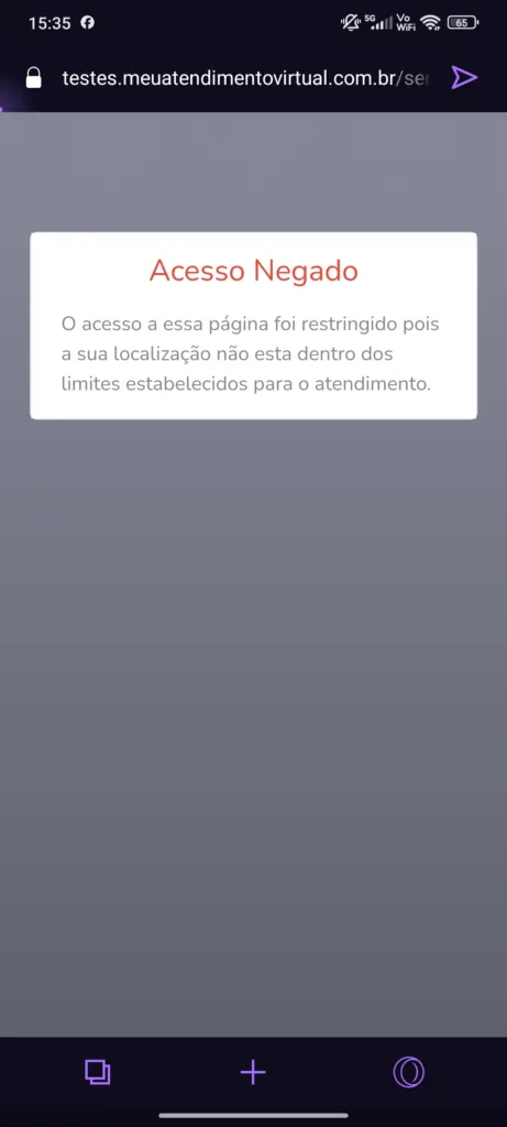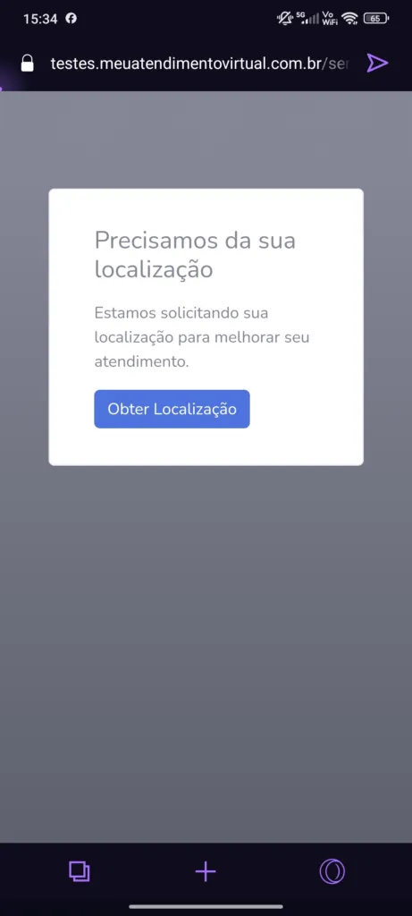 Com as configurações de localização ativadas, ao tentar criar uma senha através de um dispositivo móvel, o sistema utilizará o GPS do dispositivo para verificar se o cliente está dentro da área definida.