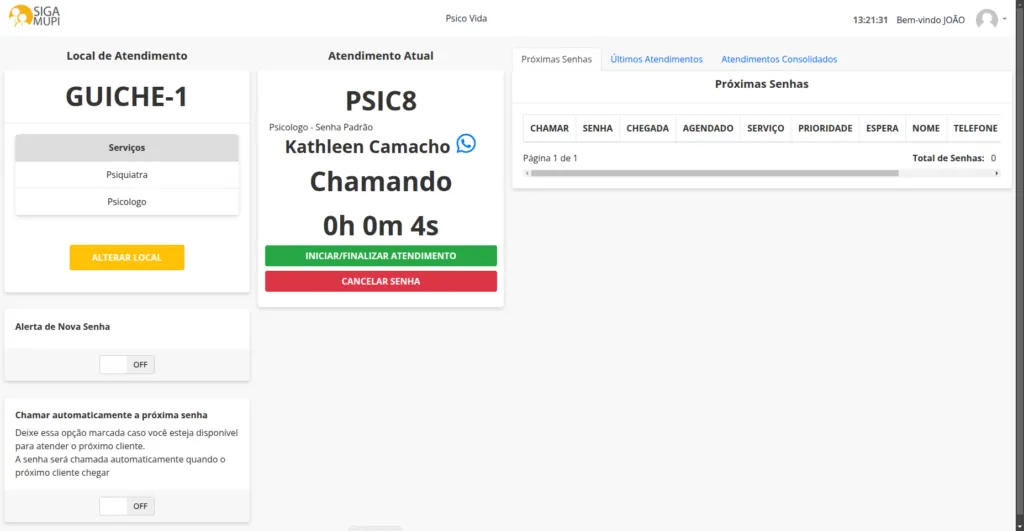 É necessário chamar uma senha para que seja possivel ocorrer uma interação entre o responsável pelo atendimento e o cliente.
