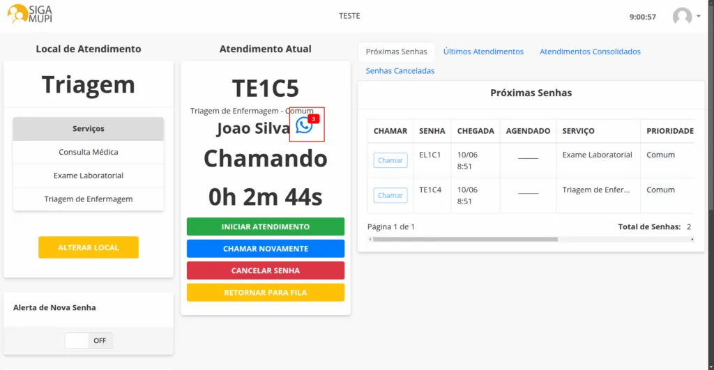 Ao chamar a senha do cliente na fila de atendimento, ele receberá automaticamente uma notificação via WhatsApp informando que sua senha foi gerada e está sendo chamada.