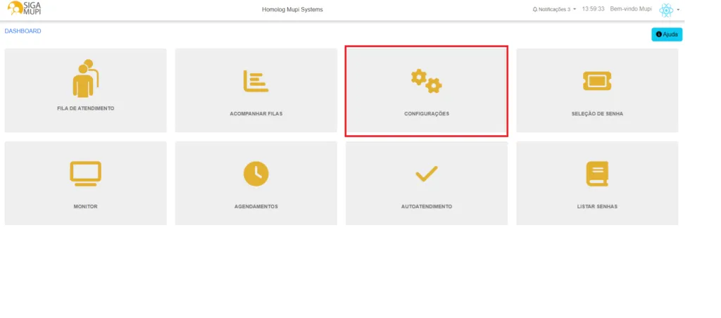 Na área do Dashboard clique em CONFIGURAÇÕES.
