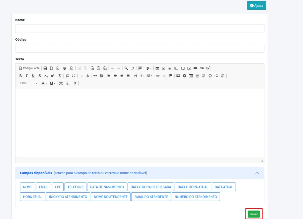 A página será novamente redirecionada, preencha todas as informações e clique em SALVAR.